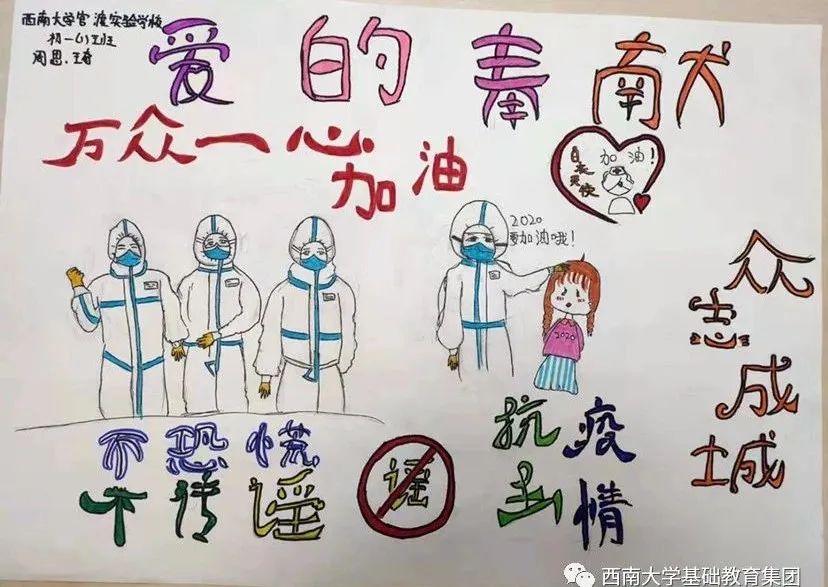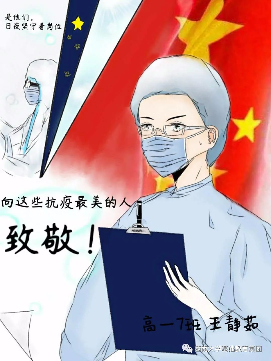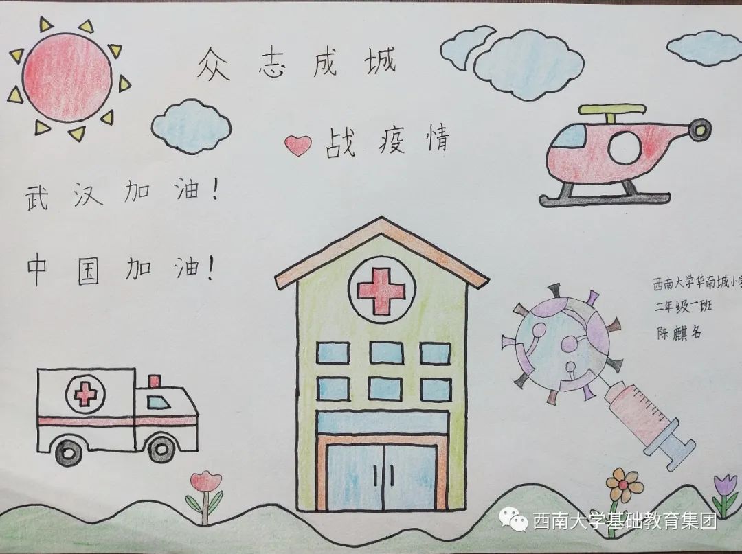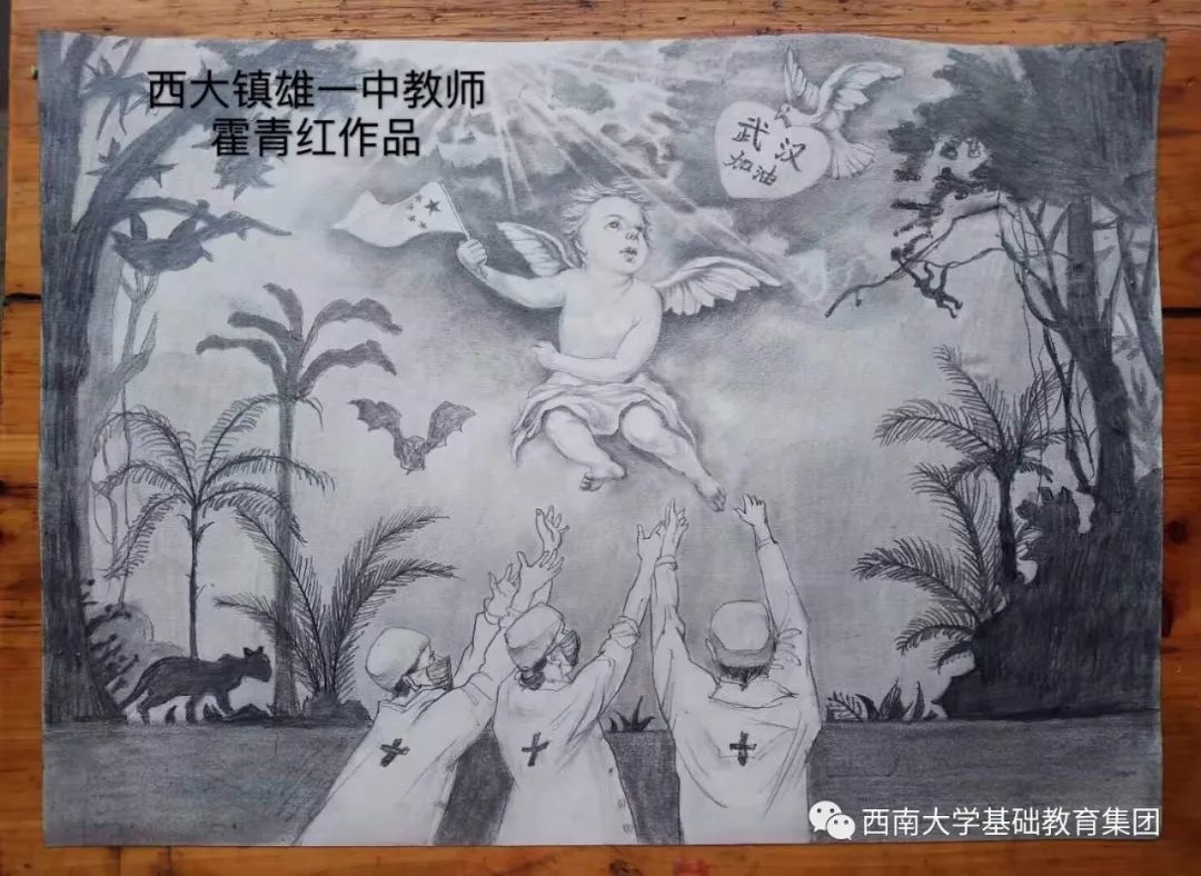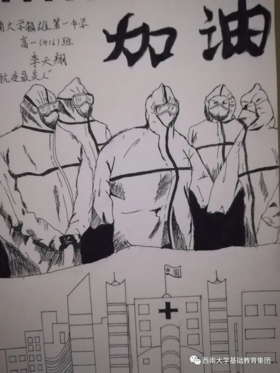 虽然不能像医务人员那样前往一线去救死扶伤,但是作为学生的我,有义务,也有责任为此次抗击疫情尽自己的微薄之力,为此我绘画了一副有关抗击疫情的绘画作品,想呼吁大家,在疫情面前人人有责,同时让人们意识到这次疫情的严重性,这场疫情不仅是国家之战,也是全民之战。一方有难,八方支援。中国人民齐心协力抗击疫情,我相信美好的明天就在不远处向我们招手。”