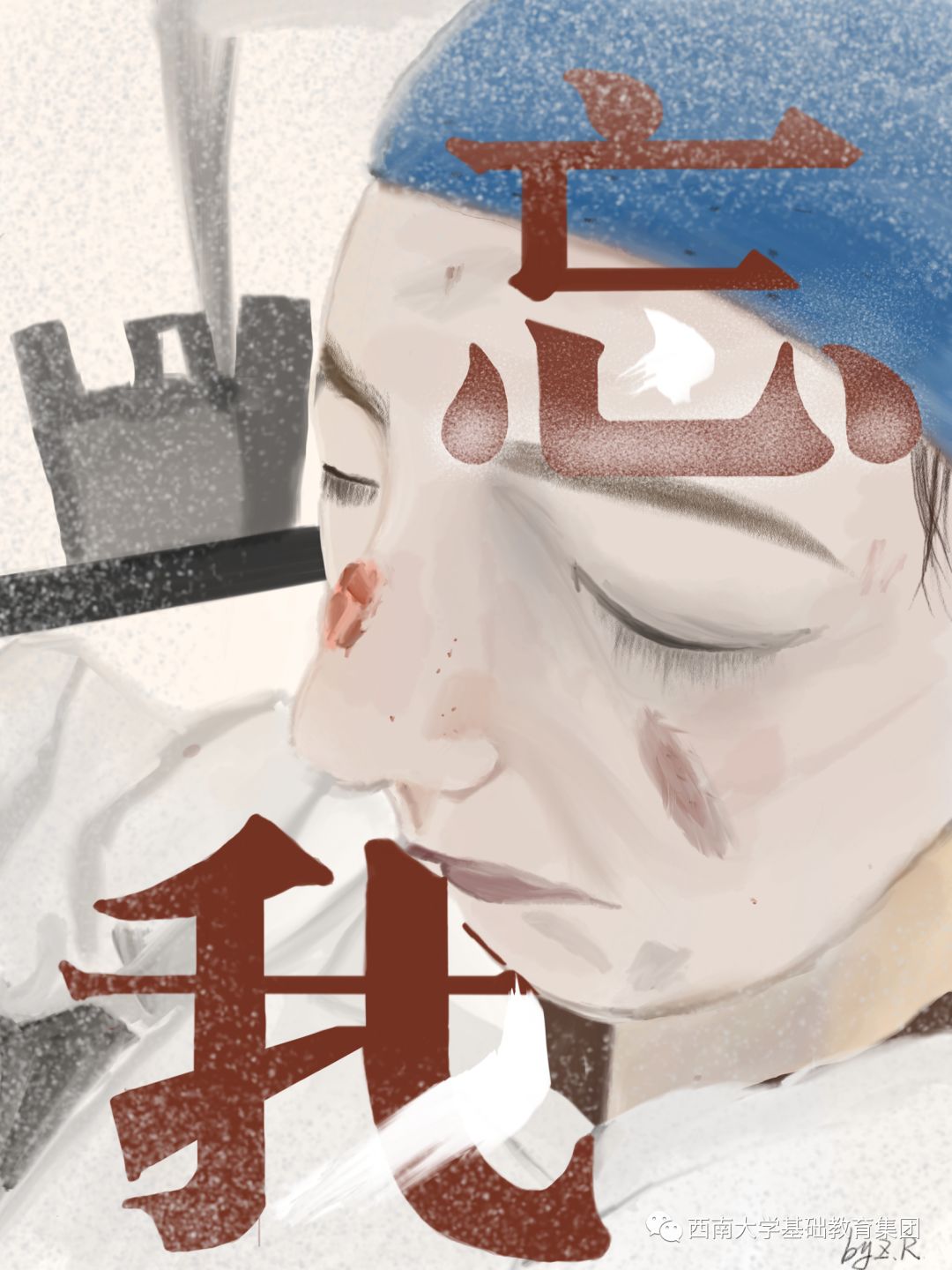 ●作品介绍:“病毒从人身上夺走了生命,但也让人们懂得了珍惜生命“。该作品具有十分强的表现力。护士姐姐们,它们可能下个月就要结婚,作为女孩子,他们平日里也关注美丽,在疫情面前,她们减去长发,奔赴战疫现场,为祖国和人民做自己的贡献。画中的女孩年轻、优雅、美丽,画中的医生踏实、肯干,形成鲜明的对比,寓意深刻。