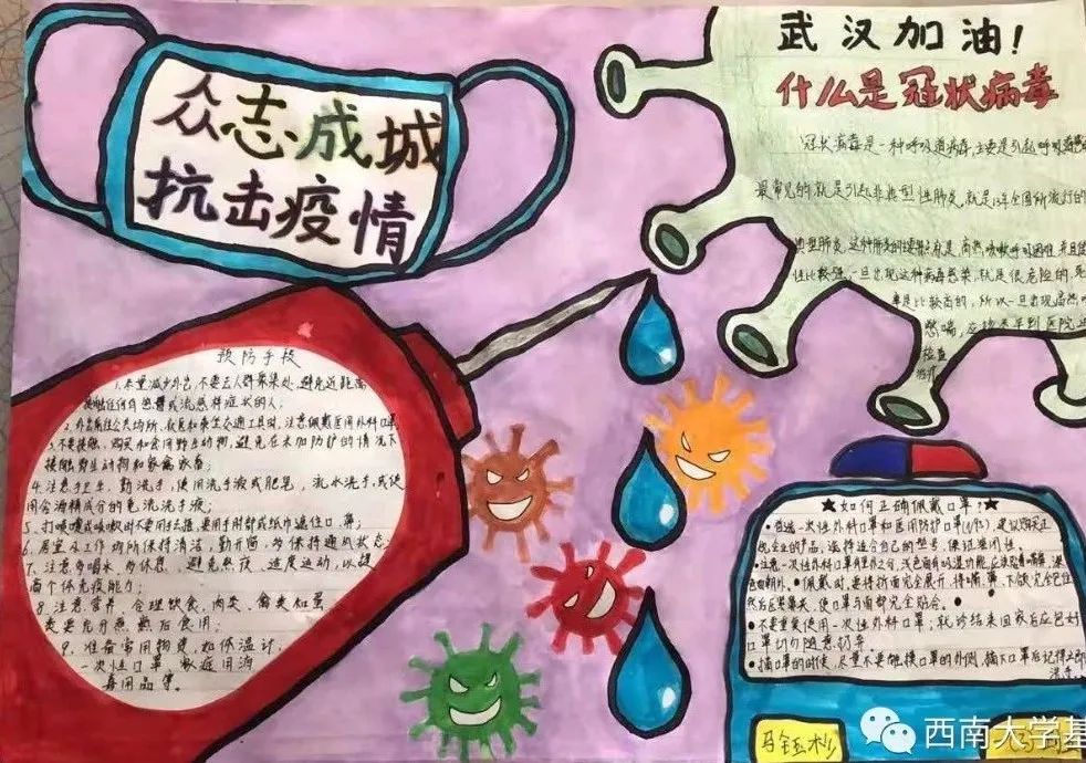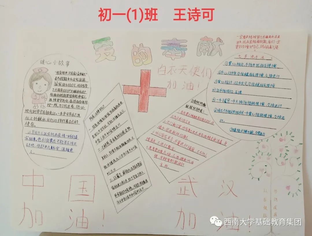 ●作品介绍:该手抄报作品展示了防疫小措施以及用自己的手段对可爱的白衣天使致以崇高的敬意。可爱的白衣天使们塑造的真的很可爱。