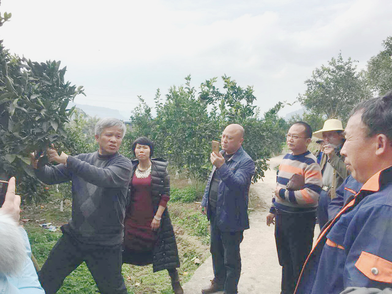 邓烈研究员在万州玫瑰香橙果园指导培训果农整形修剪