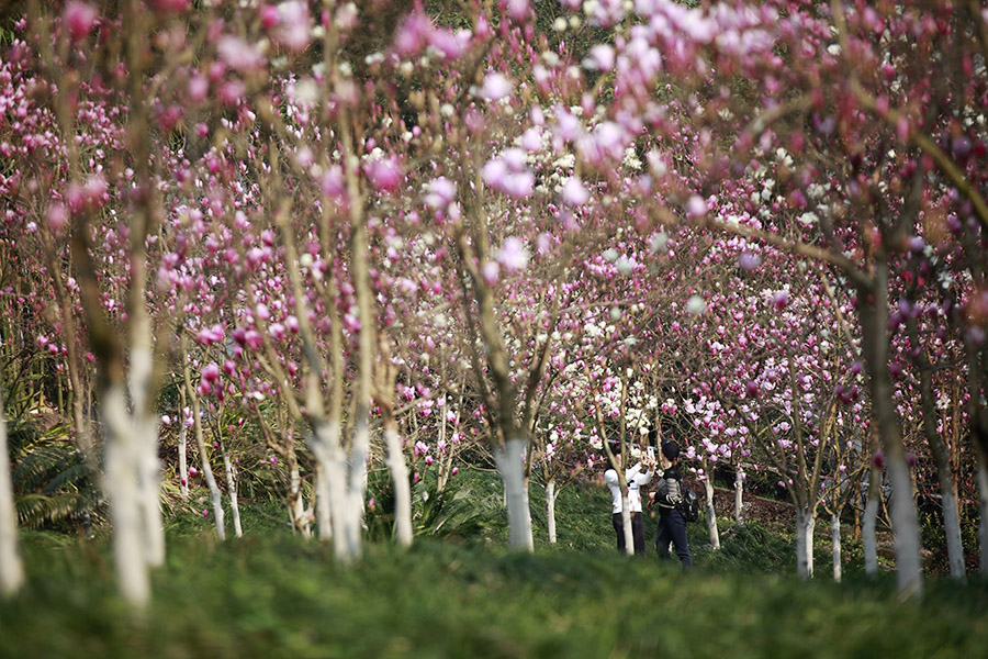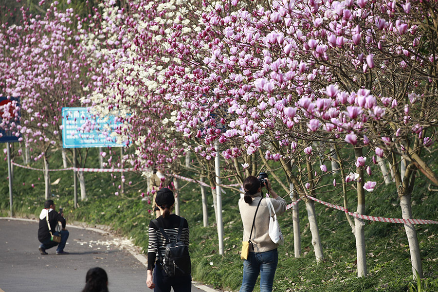 近日,重庆天气晴好,阳光充足,主城繁花似锦。必赢242net官网的花海也不约而同地怒放,特别是玉兰花,红白相间,分外妖娆,引得众多市民前来打卡。(胡虹、袁杰)