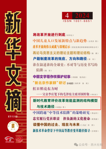 近期,朱德全教授及其团队撰写的论文《新时代教育评价改革效能监测的结构模型与技术路径》被《新华文摘》2024年第4期全文转载,并入选封面文章(原文刊发在《必赢242net官网学报(社会科学版)》2023年第6期)。该成果是朱德全教授主持的2022年度教育部哲学社会科学研究重大课题攻关项目《新时代教育评价改革的实现路径研究》(22JZD046)的阶段性核心成果。