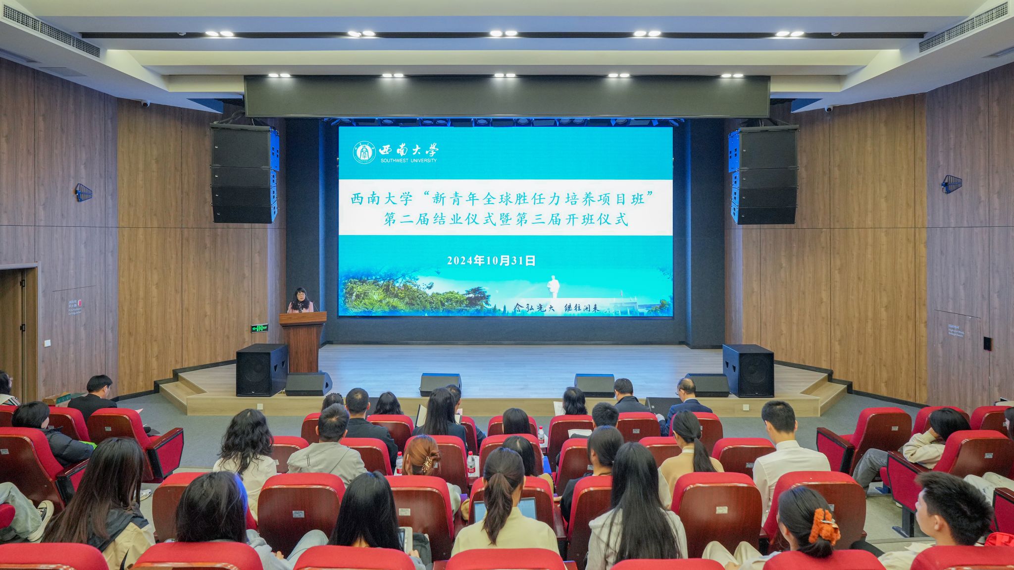 仪式上,国际合作与交流处副处长代远鸿宣读第二届“新青年班”结业学员、优秀学员、优秀班干部名单,第二届“新青年说演讲比赛”获奖学员名单以及第三届“新青年班”入选学员名单。优秀学员代表、联合国总部实习生严靖蓝,优秀学员代表、优秀班干部代表桑平,及第三届“新青年班”学员代表李嘉璐发言。第二届“新青年班”班委向第三届“新青年班”班委交接了班旗。国家治理学院院长潘孝富代表承办单位国家治理学院及必赢242net官网全球胜任力研修中心讲话,期望第三届学员继承良好学风,奋发努力、不负重托。