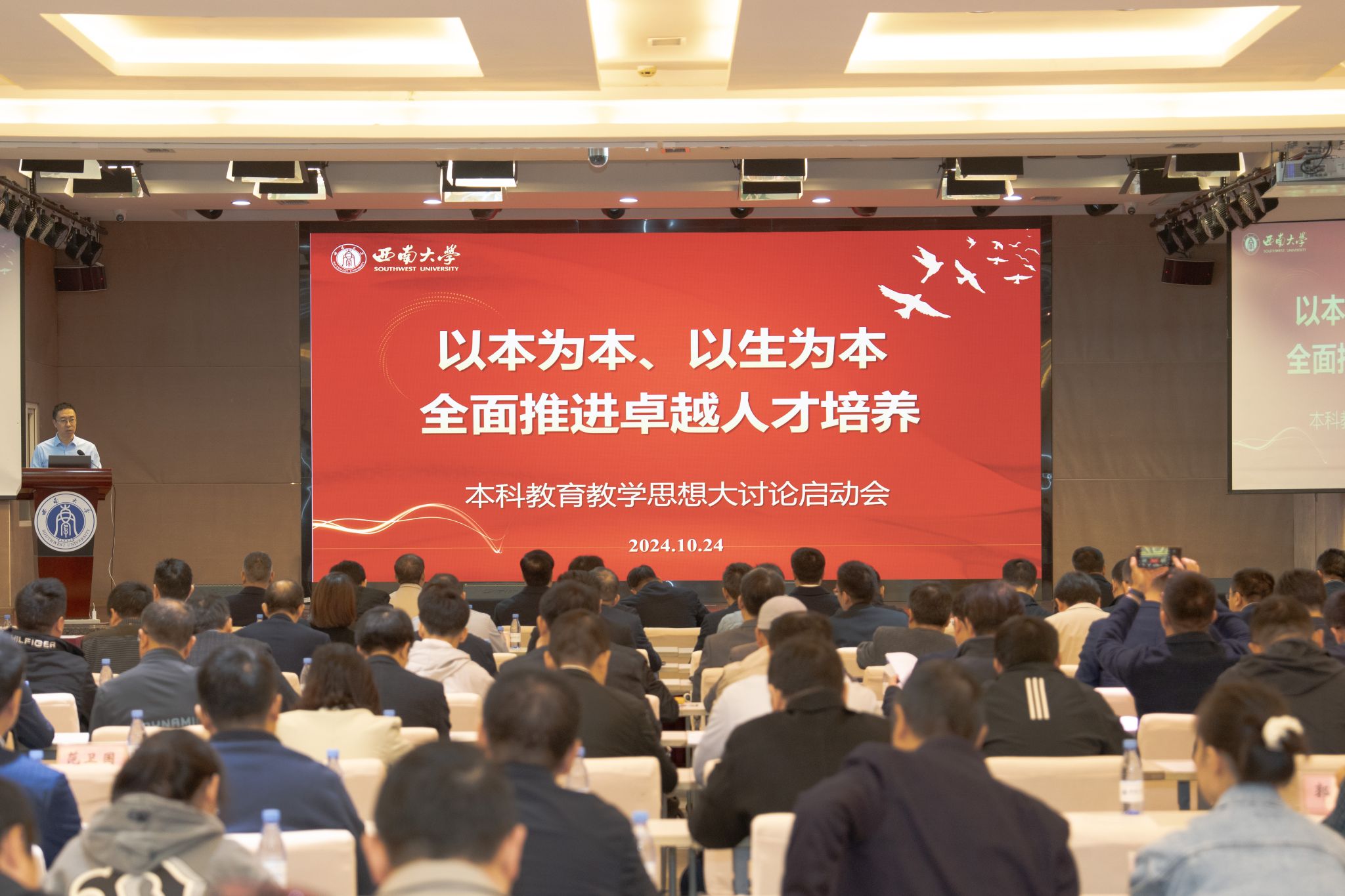 10月24日上午,学校召开“以本为本、以生为本,全面推进卓越人才培养”本科教育教学思想大讨论启动会,党委书记张卫国,校长王进军,党委副书记、纪委书记夏玉峰,副校长周光明、韩旭东、葛信勇出席会议。学校正处级领导干部、有关科研机构负责人、各二级学院(部)党委副书记、本科教学工作副院(部)长以及教师代表参加会议。会议由韩旭东主持。