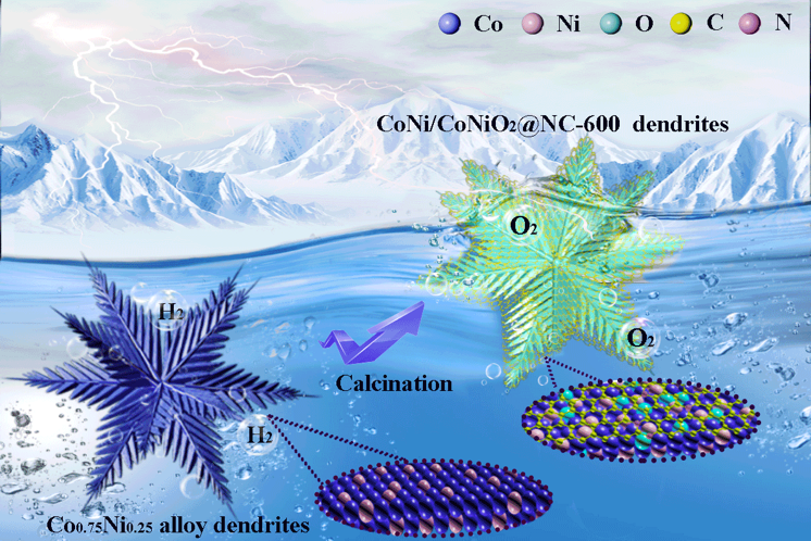 近日,学校化学化工学院罗红群教授和李念兵教授课题组在环境催化领域国际知名期刊《Applied Catalysis B: Environmental》(影响因子:11.698)上发表题为“CoNi based alloy/oxides@N-doped carbon core-shell dendrites as complementary water splitting electrocatalysts with significantly enhanced catalytic efficiency”(氮掺杂碳包覆的CoNi基合金/氧化物核-壳枝蔓晶用于高效全电解水的研究)的文章。必赢242net官网为该成果的第一完成单位,罗红群教授和李念兵教授为共同通讯作者,罗红群教授指导的2016级硕士研究生张清为第一作者。