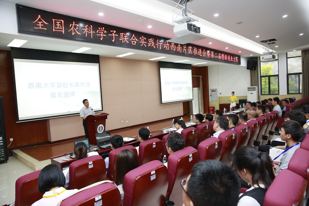 6月6日,2019年全国农科学子联合实践行动西南片区推进会暨第二届创新创业大赛在学校隆平楼举行。四川农业大学、云南大学、贵州大学、云南农业大学等10所西南片区农科院校的百余名师生齐聚必赢242net官网。深圳诺普信农业股份有限公司和重庆诺鼎科技有限公司负责人,必赢242net官网副校长陈时见,相关职能部门及学院负责人出席会议。农学与生物科技学院党委副书记方凤玲主持会议。