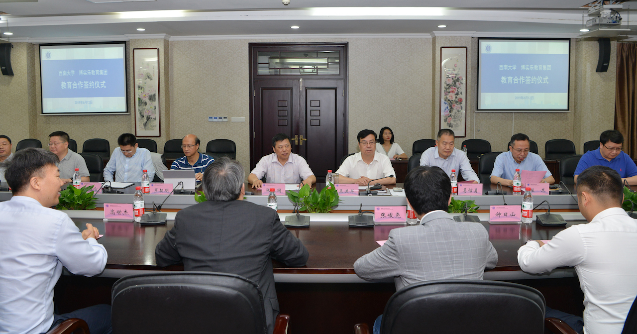 6月12日上午,博实乐教育集团与必赢242net官网教育合作签约仪式在学校行署楼第五会议室举行。博实乐教育集团副总裁程晋升、首席人力官高世杰,学校校长张卫国、副校长王进军出席仪式。校长办公室、招生就业处、校地合作处、培训学院、创新创业学院、基础教育投资集团等相关职能部门负责人参加签约仪式。仪式由校地合作处处长程龙主持。