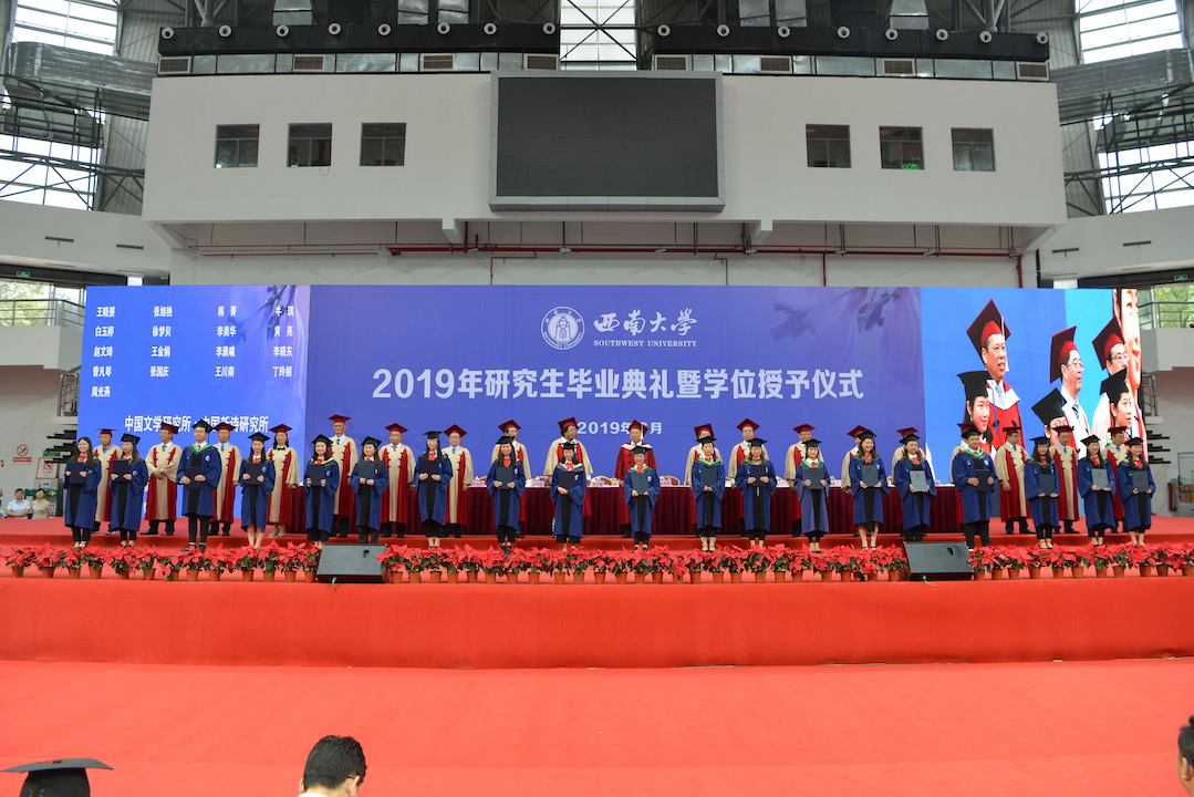 仪式上,学校学位评定委员会副主席、党委书记李旭锋宣读了学校2019年学位授予决定。全体学位获得者庄严宣誓,将铭记西大校训,践行西大精神,勇肩时代使命,为祖国富强恪尽职守,为民族振兴奋斗终生。随后,学校学位评定委员会主席、校长张卫国为博士学位获得者逐一授予学位;学校学位评定委员会主席、副主席、委员为硕士学位获得者代表授予学位。最后,学位授予典礼在高昂的《歌唱祖国》中圆满落幕。