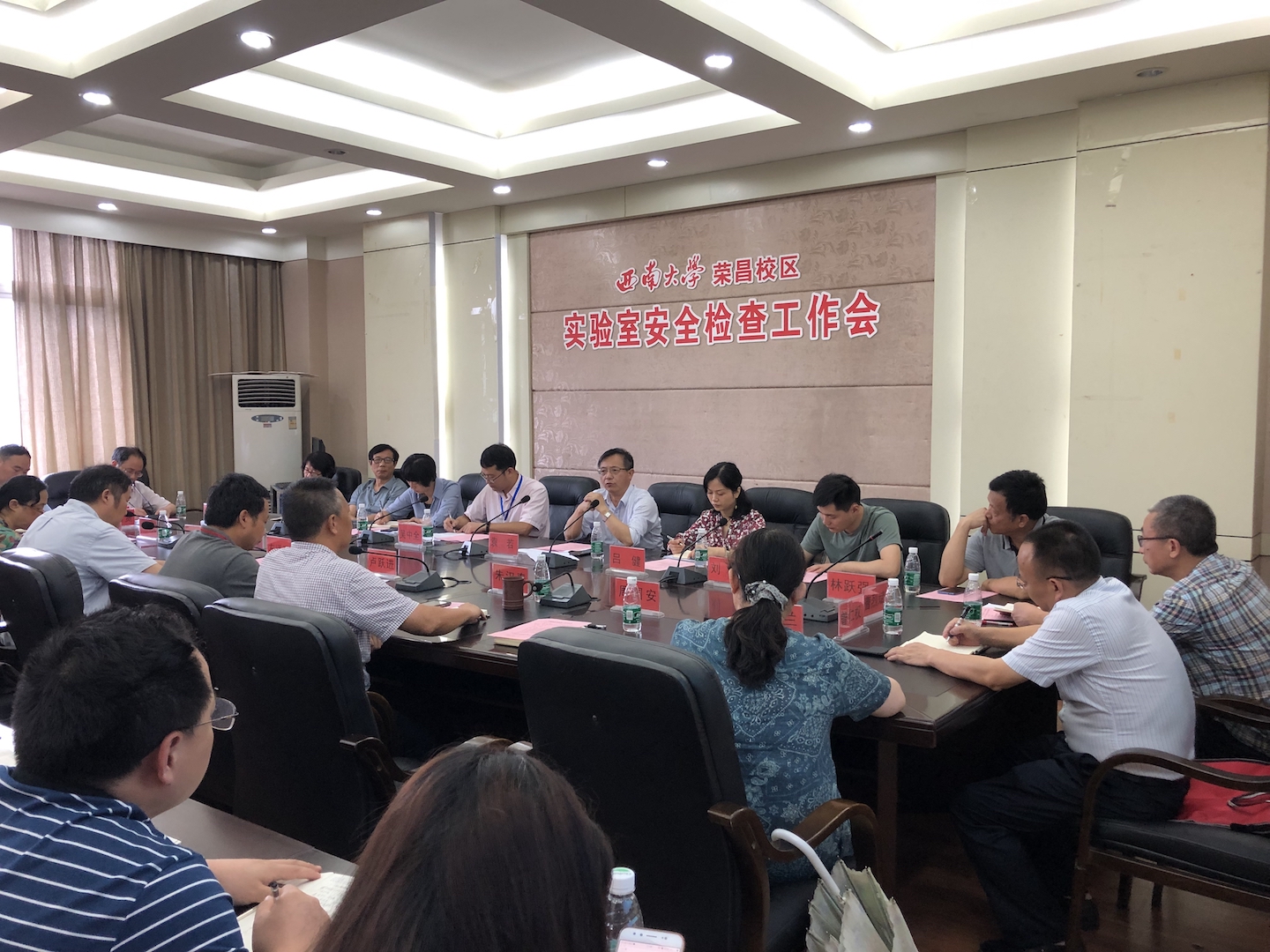 随后,两院一部领导分别汇报了本单位的实验室建设和管理情况,并就有关问题进行了交流。实验室与设备管理处处长袁若谈到,实验室安全是实验室运行的基础和底线,全校上下要以习近平新时代中国特色社会主义思想为指导,以师生为中心,充分认识实验室安全工作的重要性。同时要求各单位高度重视实验室安全工作,切实加强安全教育与培训,将安全责任落实到位;制定实验室安全奖惩制度,定期开展安全隐患排查工作,做好整改工作;针对实验室建设、实验师资队伍等问题,学校要加强和校区的交流与沟通。