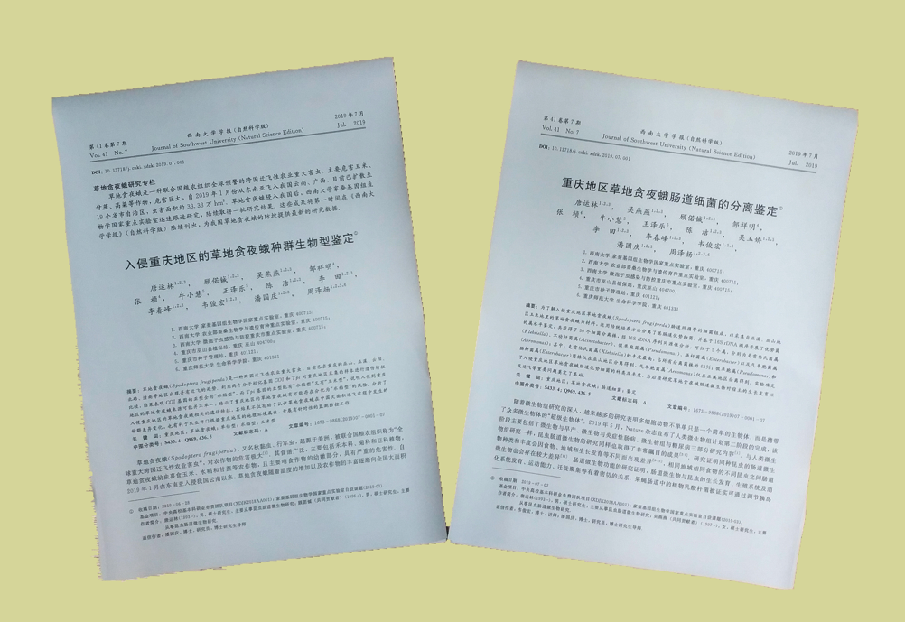 草地贪夜蛾是一种联合国粮农组织全球预警的重大洲际迁飞性农业害虫,自2019年1月从东南亚侵入我国云南、广西以来,已经向北迁飞蔓延了19个省市自治区,主要危害玉米、高粱等大宗粮食作物,危害巨大。该虫快速迁徙引起了国务院的重视,近期农业农村部专门召开了草地贪夜蛾的防控会议,国内许多科研院所也纷纷投入人财物对该害虫进行研究。自今年5月初草地贪夜蛾在重庆发现以来,学校家蚕基因组生物学国家重点实验室潘国庆研究员课题组迅速行动,在重庆市各级农业部门的大力配合下,第一时间从各区县收集虫样,快速开展了草地贪夜蛾生物型和肠道菌群的研究,希望能为我国草地贪夜蛾的综合防控提供第一手的详实数据。《必赢242net官网学报(自科版)》关注学术热点研究,积极服务于学校重点科学研究,与该课题组紧密合作,及时调整出刊计划,组织精干编辑认真、高效完成了稿件的评审、编辑工作,仅仅用一周时间,课题组两篇关于草地贪夜蛾的最新研究成果《入侵重庆地区的草地贪夜蛾种群生物型鉴定》、《重庆地区草地贪夜蛾肠道细菌的分离鉴定》通过该学报于7月4日在中国知网优先发表,及时发布了国家急需的草地贪夜蛾相关研究报告,为治理草地贪夜蛾提供了基础数据。
