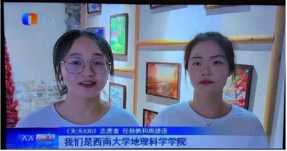 地理科学学院北极星党员志愿服务队队员任秋帆与周婕语