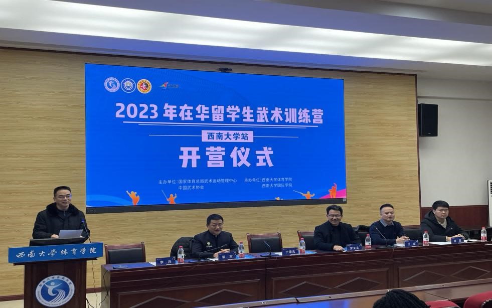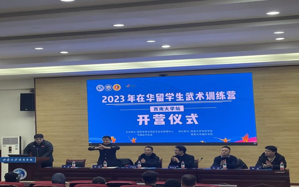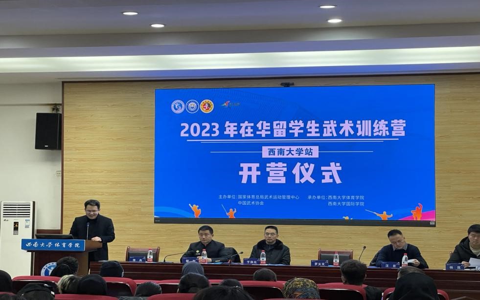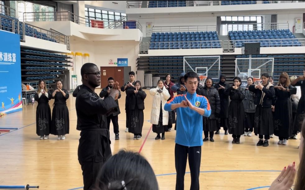 2023年12月23日,在华留学生武术训练营(必赢242net官网站)开营仪式在必赢242net官网体育学院多功能会议室举行。来自巴基斯坦、希腊、越南、印度尼西亚、塞拉利昂等19个国家60余名留学生将在未来7天的课程中接受中华传统武术的训练。