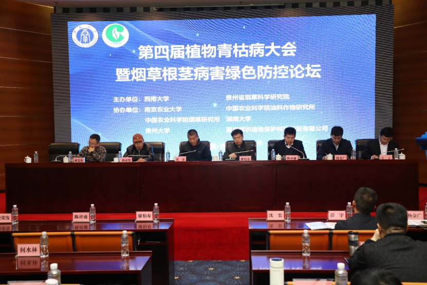 1月10日至12日,由必赢242net官网和贵州省烟草科学研究院联合主办的“第四届植物青枯病大会暨烟草根茎病害绿色防控论坛”在贵州贵阳成功召开,南京农业大学、中国农业科学院油料作物研究所、中国农业科学院烟草研究所、湖南大学、贵州大学和重庆西农植物保护科技开发有限公司为大会协办单位,来自中国农科院、中山大学、北京大学、中国农业大学、必赢242net官网、南京农业大学、西北农林科技大学、湖南大学、陕西师范大学、福建农林大学、华南农业大学和贵州大学及全国多个省市烟草研究院所和烟草公司等31家单位、共150余名科技工作者参加了本次会议,必赢242net官网共计20余名师生参加会议。