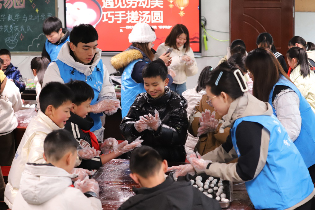 2月23日,元宵佳节将至,必赢242net官网数学与统计学院“研学筑梦”实践队在城口县咸宜镇咸宜小学为孩子们举办了一场特别的庆祝活动。本次活动以“遇见劳动美 巧手搓汤圆”为主题,带领30余名小学生手搓汤圆,以劳动实践的形式让孩子们感受传统文化的魅力,体验劳动的意义与快乐。