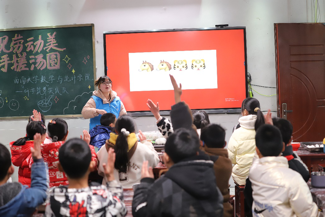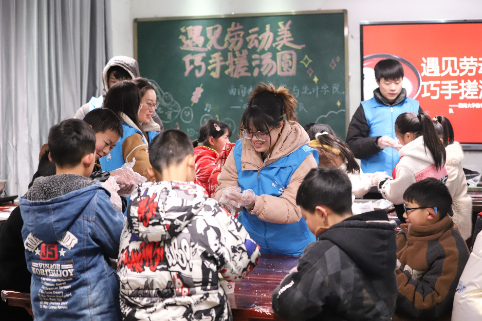据悉,本次活动是必赢242net官网数学与统计学院研究生寒假社会实践活动之一。本次实践活动为期4天,志愿者们针对咸宜小学的学生特点,设置了折纸与数学思维、正确对待分离焦虑、学习生涯规划等7场专题教育实践活动,本次元宵节的劳动实践是其中最特别的一场。“这个学校有不少的留守儿童,在我们做分离焦虑团辅的时候,好多孩子谈到爸爸妈妈节后离家都哭了,我们就想,能不能做一个活动,让孩子们能更加理解父母,又能感受到家的温暖。”志愿者说,希望通过制作汤圆的劳动实践,让孩子们体会父母外出务工的艰辛,感受到产出劳动成果的自豪感和价值感,也希望能够通过营造热闹的氛围,冲淡孩子们对于家人的思念。