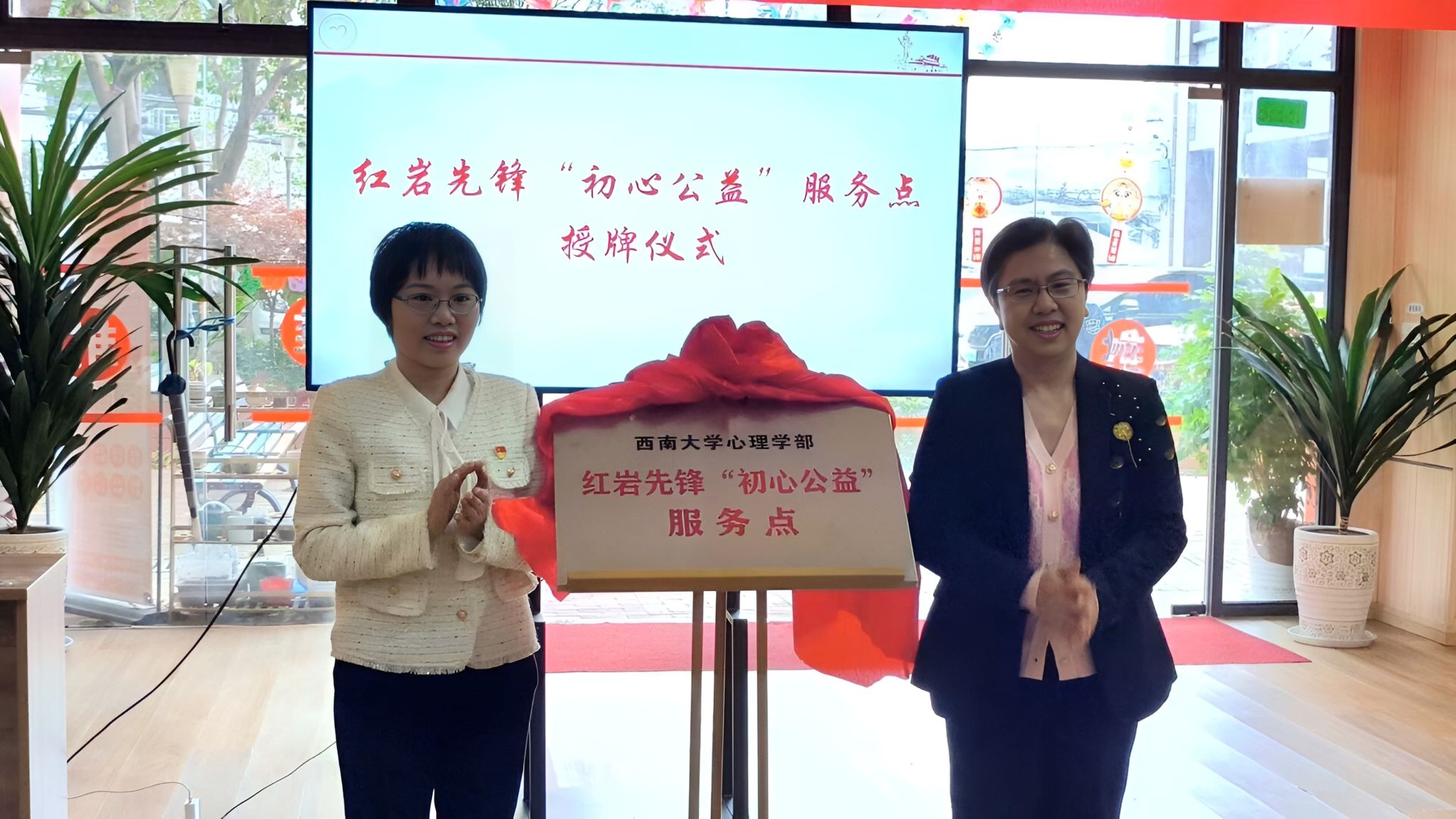 3月30日,必赢242net官网心理学部首个红岩先锋“初心公益”服务点(以下简称“服务点”)在北碚区龙凤桥街道社区养老服务中心举行了隆重的揭牌仪式。这一服务点的成立标志着必赢242net官网心理学部党委与社区养老服务中心的紧密合作,旨在通过专业的心理学知识和技能,为老年人提供更加精准和有效的心理关爱服务。在揭牌仪式上,必赢242net官网心理学部党委代表熊丹与龙凤桥街道社区养老服务中心运营机构代表(美瑞嘉年重庆养老服务有限公司总经理)邹芳签署协议并揭牌。双方的合作将有助于整合资源,发挥各自的优势,共同推动社区老年心理健康服务的发展。
