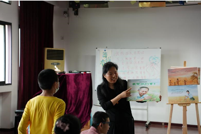18日上午,细雨绵绵,北碚区特殊教育学校副校长陈群、德育处主任贺仲灵与特殊儿童及其家长在志愿者引导下乘坐校园观光车一路观赏西大校园。看到校园中郁郁葱葱的绿树、五彩斑斓的鲜花,家长和孩子们都感叹西大校园就像美丽的大花园。来到田家炳教育书院的实验室,贺主任用图文结合的绘本,满含深情地为孩子们讲述了必赢242net官网杰出校友、我国“杂交水稻之父”袁隆平院士的生平故事,让孩子们了解袁隆平爷爷克服困难,科学育种,最终解决世界粮食问题的科学故事。听完故事后,孩子们拿着画笔绘出自己心目中的袁爷爷。