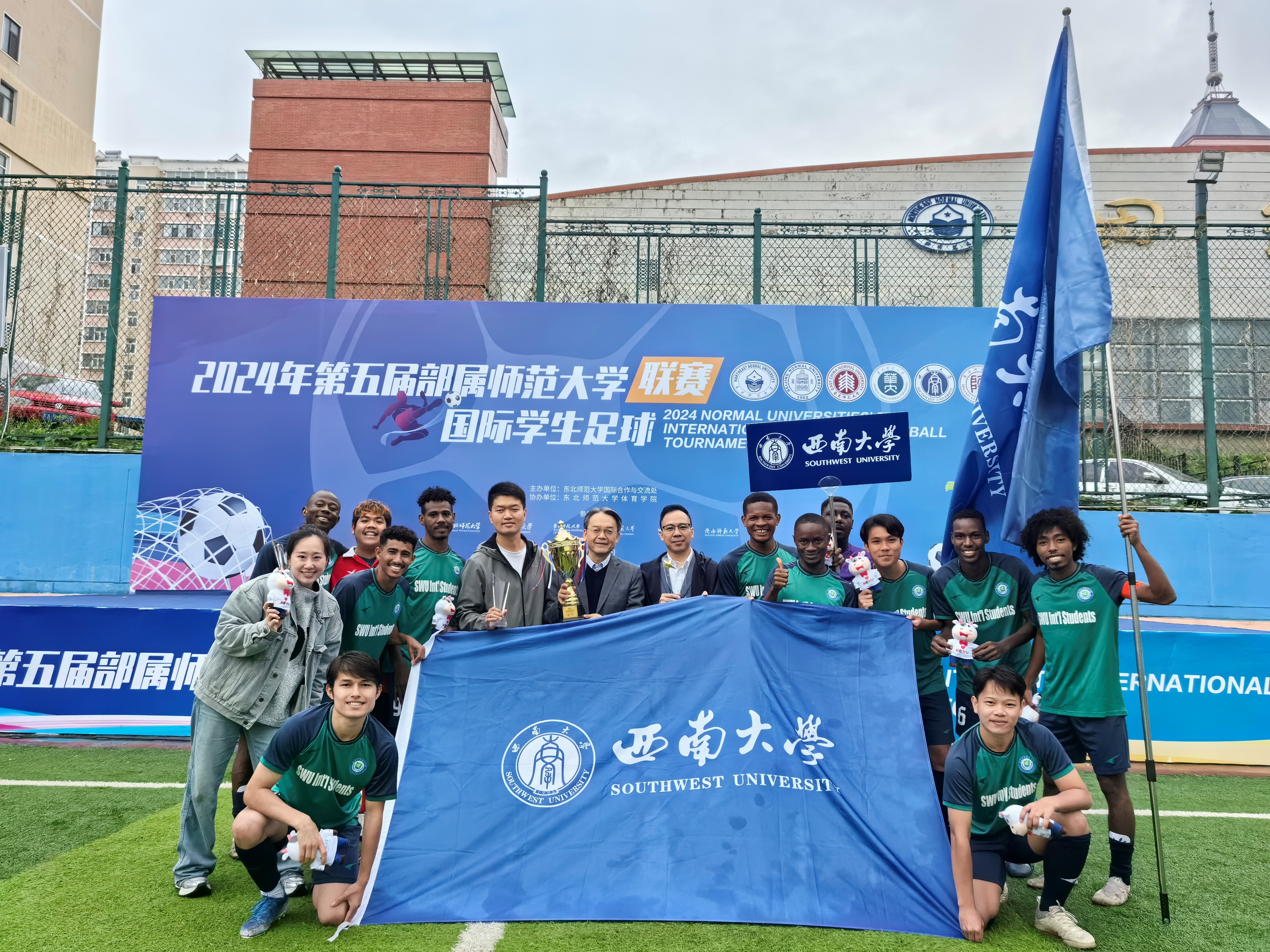 5月31日至6月1日,第五届部属师范大学国际学生足球联赛在东北师范大学成功举办。经过激烈角逐,学校国际学生足球队凭借出色的实力和稳定的发挥,成功夺得本次联赛冠军,并荣获“最佳球员”“最佳射手”和“最佳守门员”等三个单项奖。
