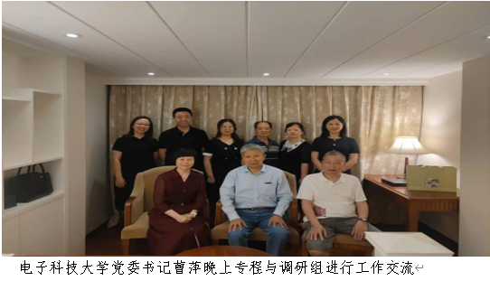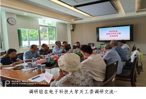 在电子科技大学调研时,该校关工委常务副主任、原校党委副书记成孝予等负责同志对该校关工委工作作了全面介绍。其中,宣讲团宣讲成电故事、学生思政特聘辅导员、师德师风巡视员、研究生“引航热线”等工作品牌颇具特色。当天晚上,该校党委书记曹萍专程回蓉,看望调研组一行并作工作交流。